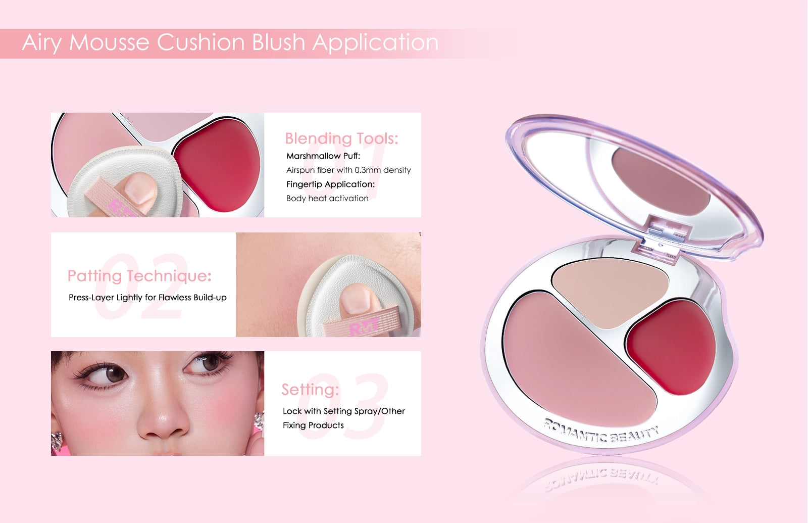 Use a damp sponge or your fingertips to warm and blend the cream blush for seamless application.